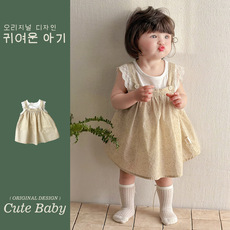 宥宝童装新款夏天套装女童上衣蘑菇无袖格子花苞裙子儿童套装2026