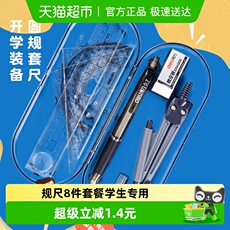 得力圆规初中生专用尺子文具套装中考专用考试套装三角尺学习用品