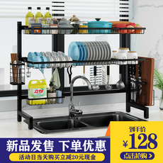 轻奢304不锈钢厨房碗碟收纳架水槽沥水架多功能放碗汲水置物架子