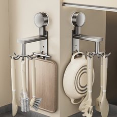 免打孔壁挂厨具收纳架锅铲勺子挂架免打孔厨房墙上多功能吸盘挂钩