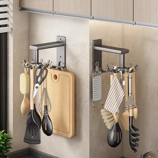 厨房置物架旋转挂钩免打孔壁挂式墙上厨具锅铲菜板勺铲子收纳挂架