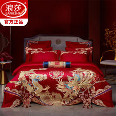 梦洁家纺结婚床上套件婚庆纯棉全棉喜庆婚嫁大红色床上用品