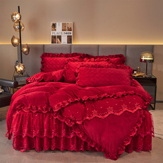 雕花爱心牛奶绒婚庆四件套加厚冬季宝宝绒红色结婚被套床单床笠