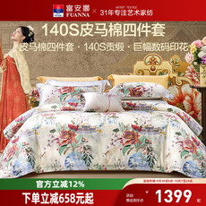 富安娜家纺140支双股皮马棉床上四件套纯棉全棉床单被套轻奢床品