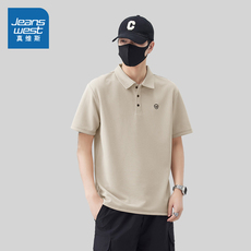 龙叨叨夏季新款美式复古设计感短袖牛仔衬衫男百搭休闲立领上衣潮