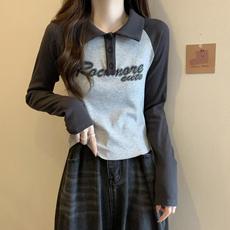 品牌女装外贸出口拼色长袖卫衣女打底衫时尚减龄纯棉印花秋季上衣