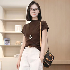 弹力柔软短袖T恤女~秋季新款舒适修身显瘦女上衣0440