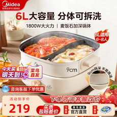 美的新款鸳鸯电火锅家用多功能煎炒分控一体电热锅分体式电煮锅