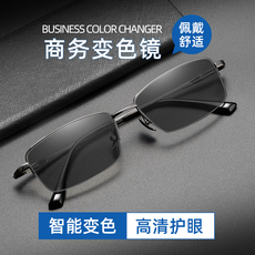 智能变色近视眼镜男款商务半框纯钛可配有度数眼睛防辐射平光镜