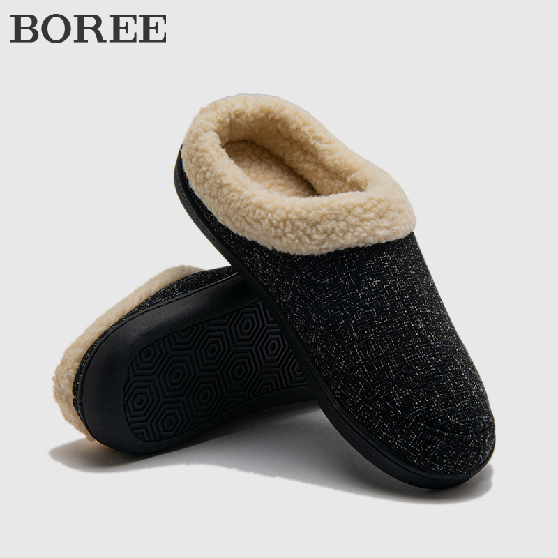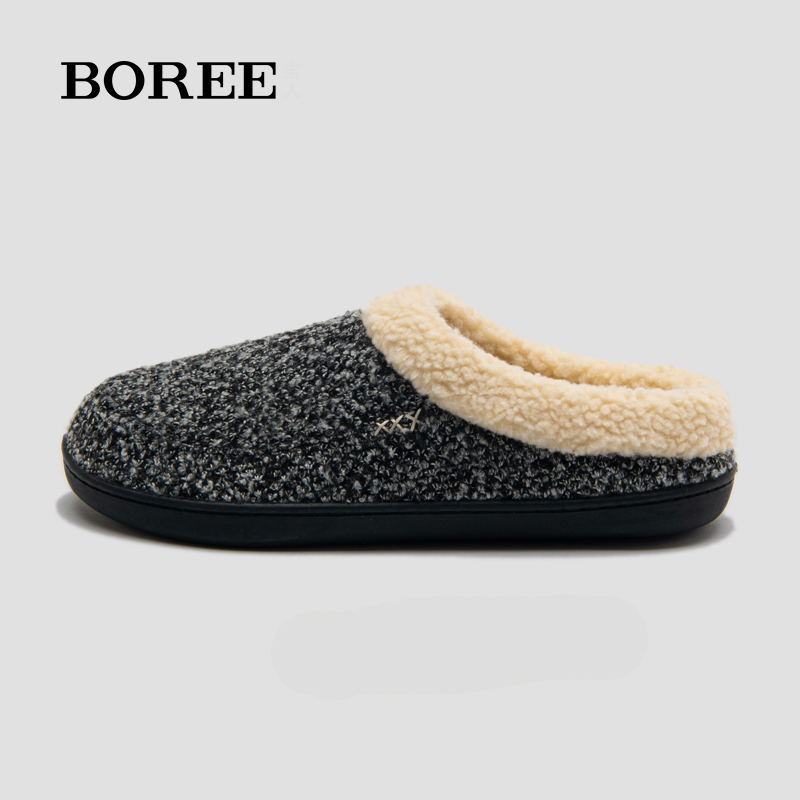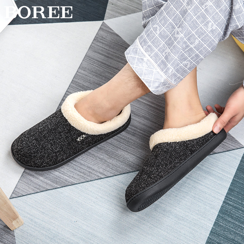 Boree/宝人棉拖鞋男士大码冬季加绒加厚保暖包头棉拖室内居家防滑