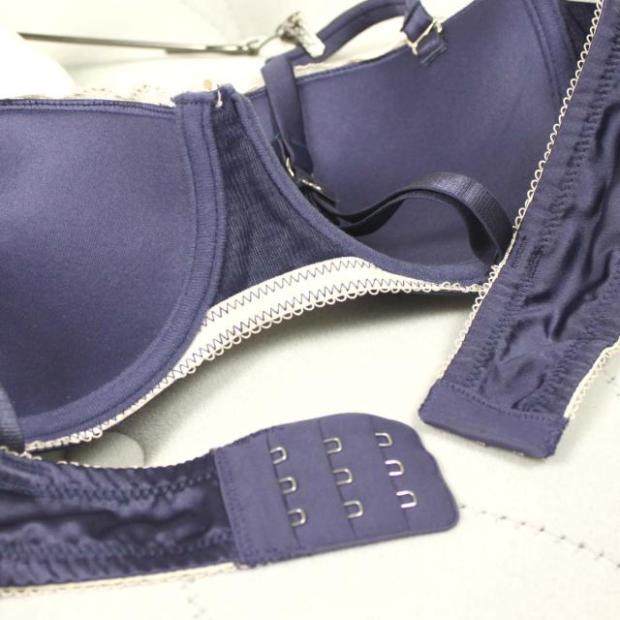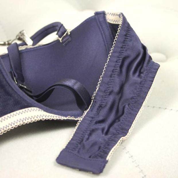 蓝色缎面肩带罩杯文胸内衣