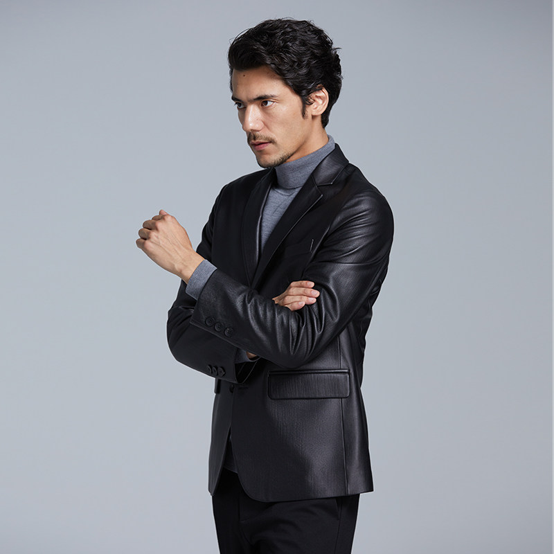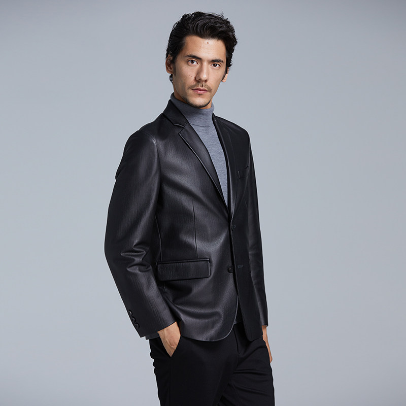 【高质羊皮】DIDIBOY高端品牌真皮皮衣春秋季西装男黑色夹克外套
