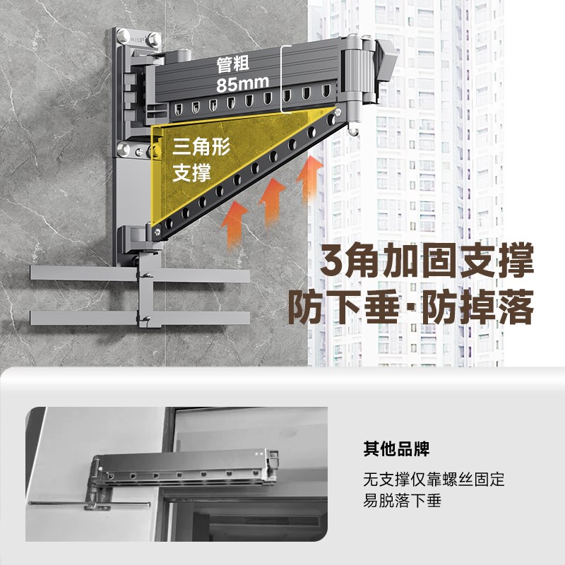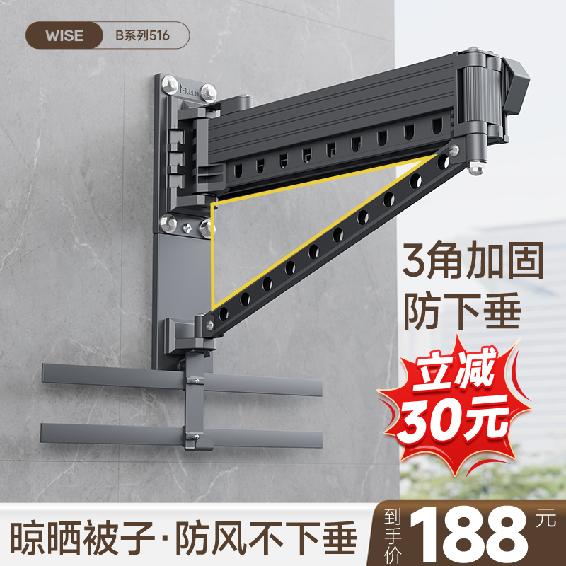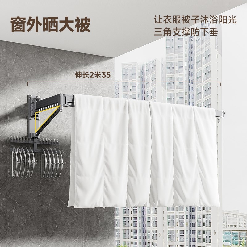 阳台不锈钢晾g衣杆折叠伸缩家用壁挂户外墙晒被子神器窗外晾衣架
