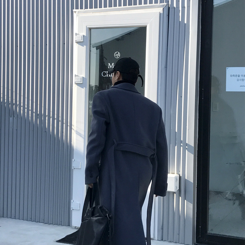MRCYC冬季中长款毛呢大衣韩系加厚保暖呢子外套男双排扣潮流风衣