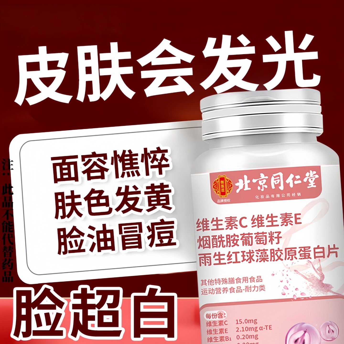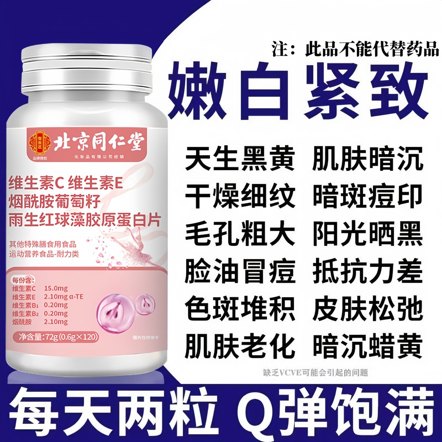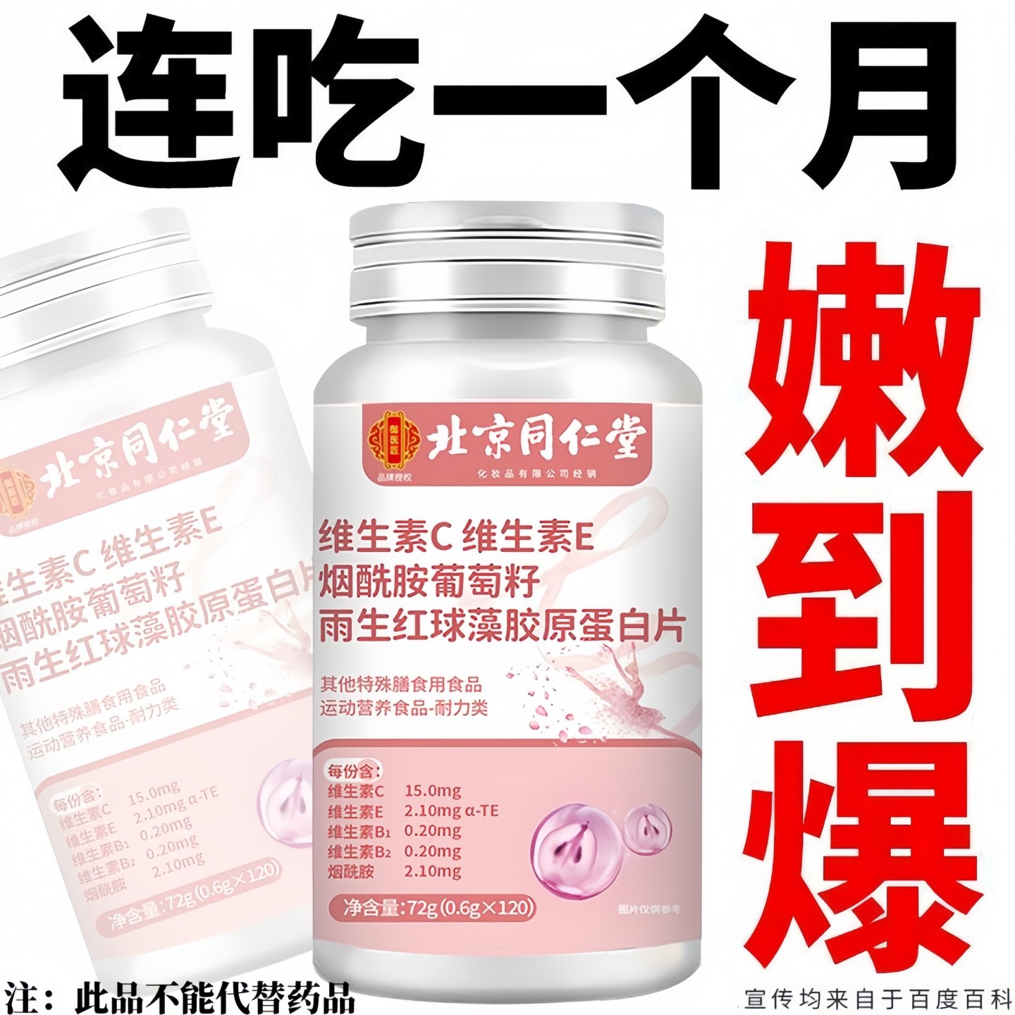 北京同仁堂维生素C+E烟酰胺葡萄籽虾青素胶原蛋白片120粒可搭美白