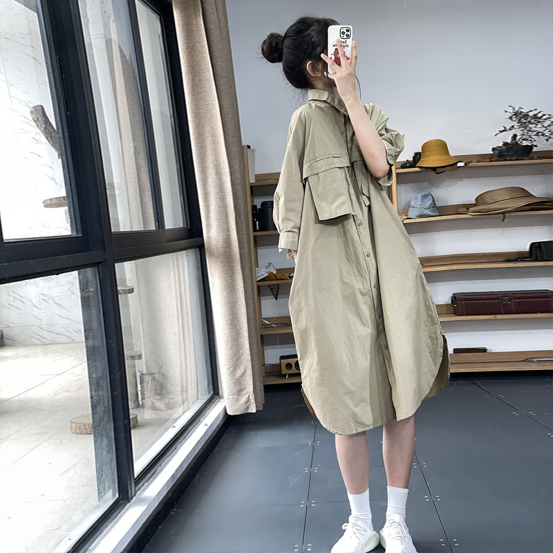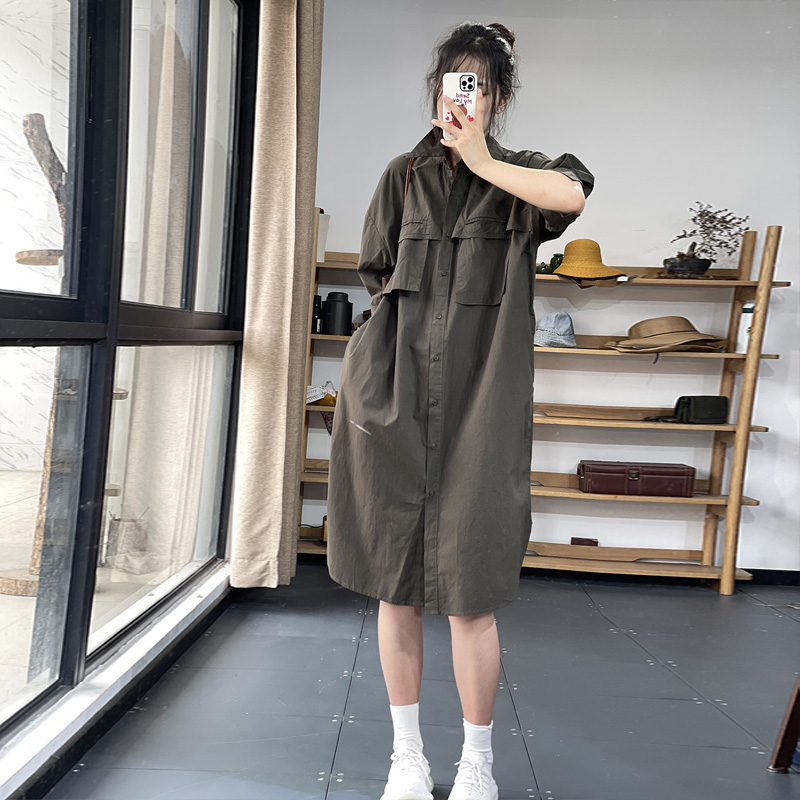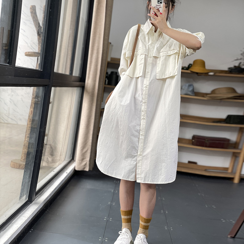 工装风连衣裙女素凡卡夏季韩版日系休闲拼接超宽松显瘦长款衬衣裙