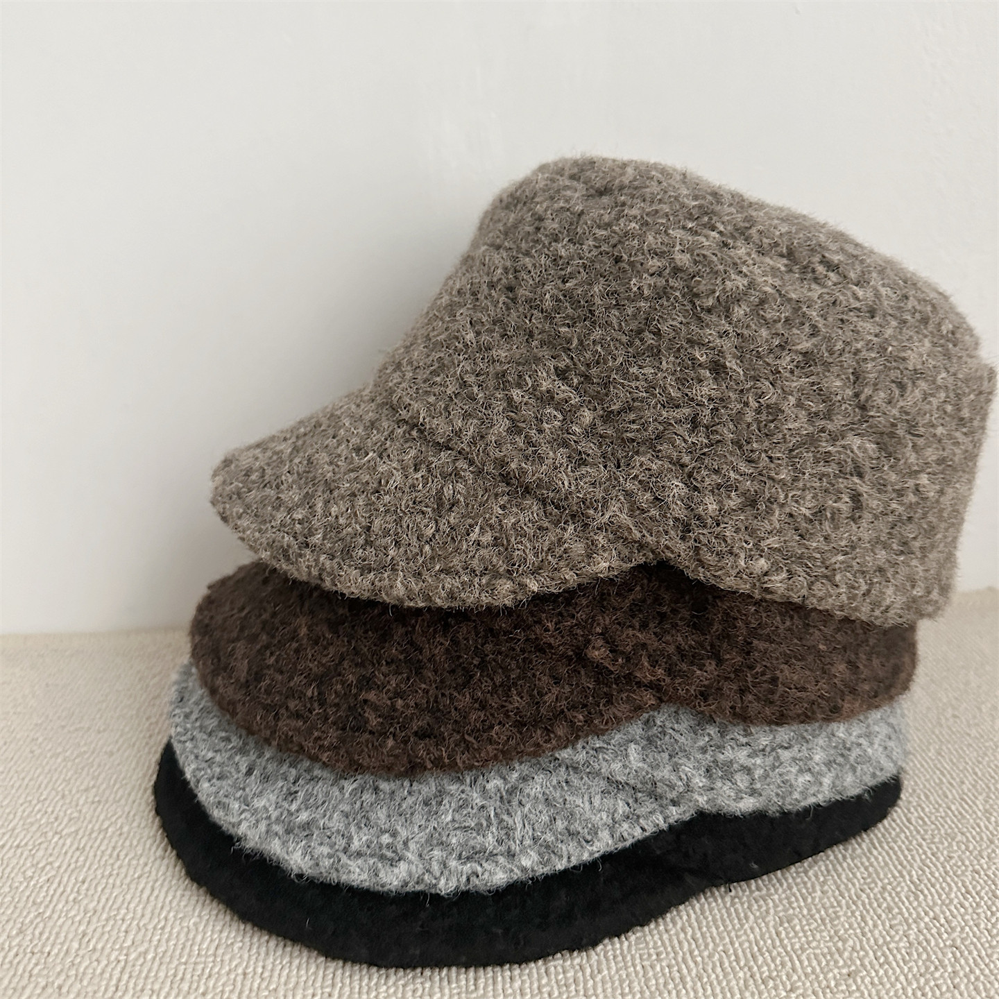 韩系粗花毛呢鸭舌帽女加厚报童帽