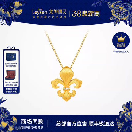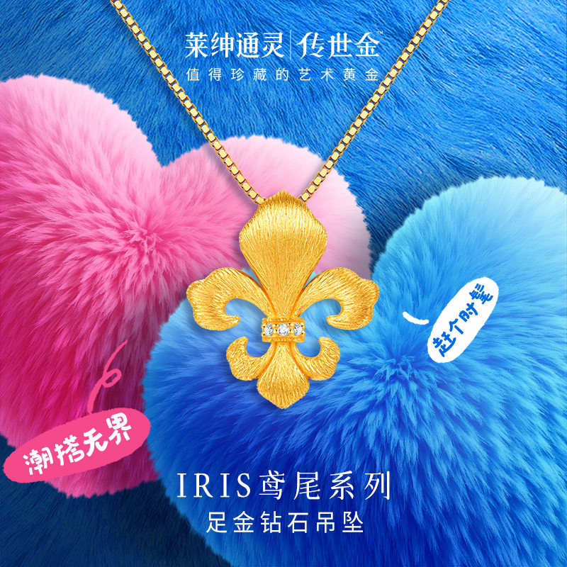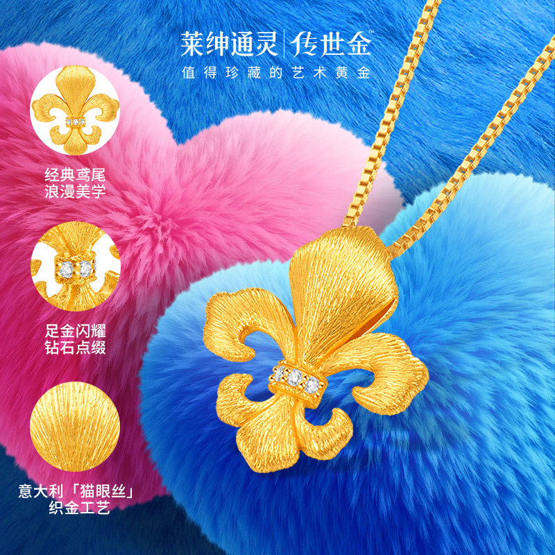 【商场同款】莱绅通灵传世金鸢尾足金5G古法黄金钻石吊坠