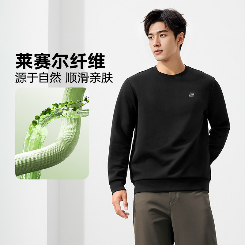 361运动卫衣男冬季套头圆领卫衣常规舒适保暖上衣黑色运动服男士