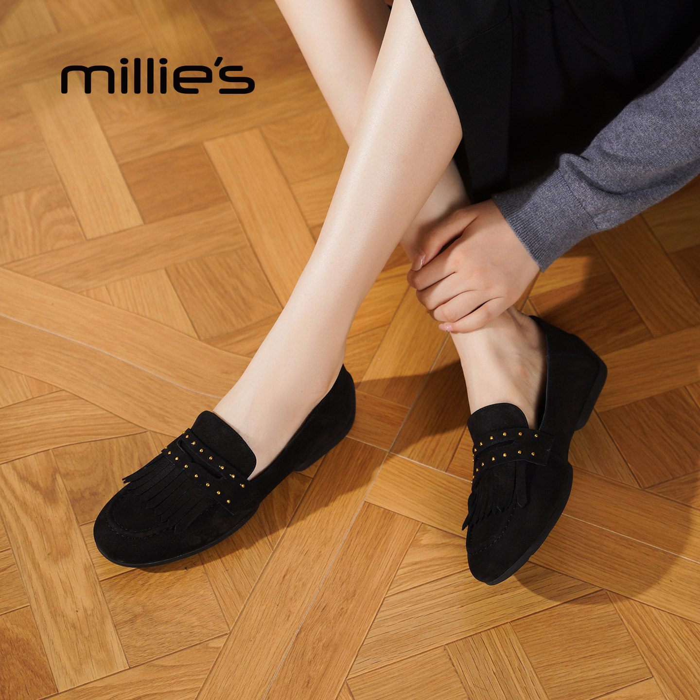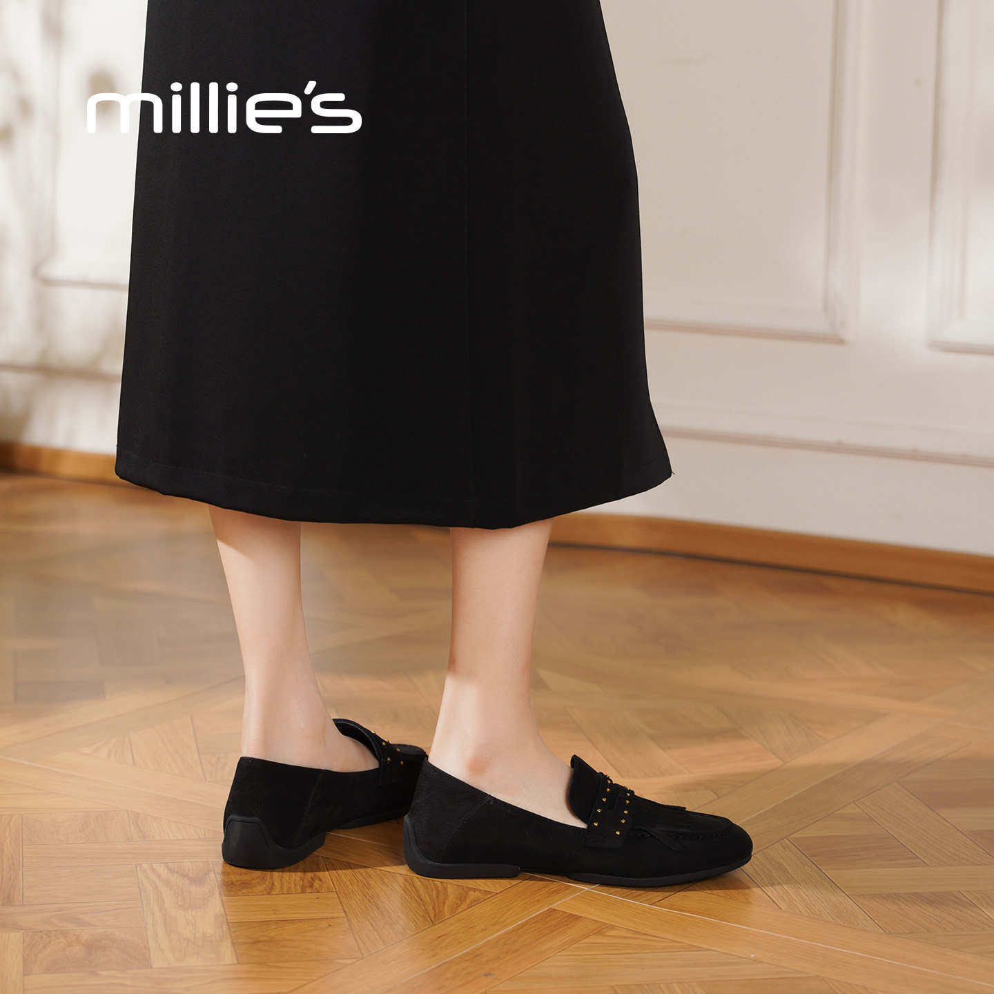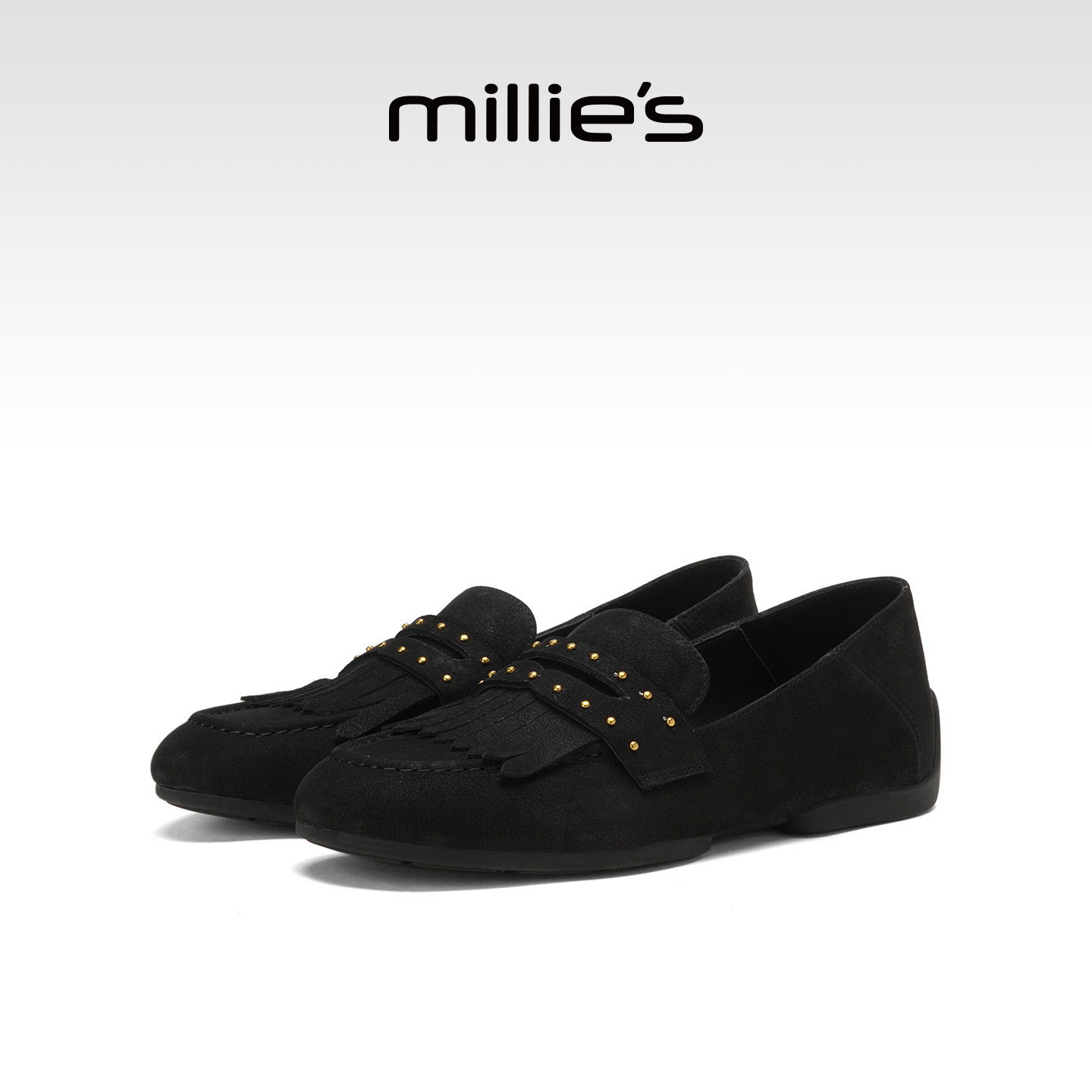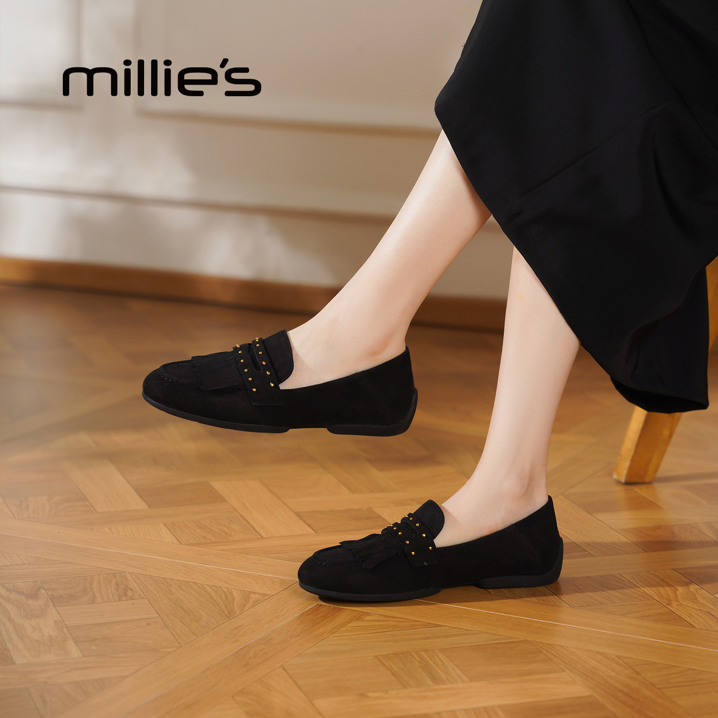 millies妙丽复古黑色乐福鞋女鞋