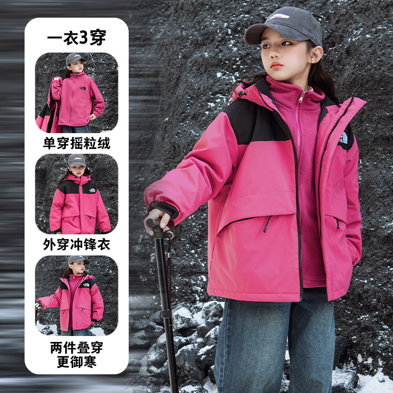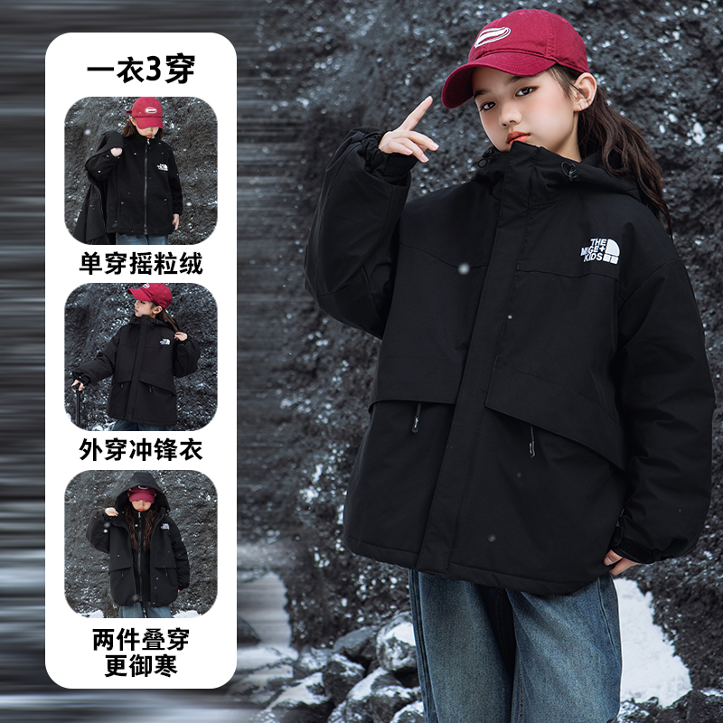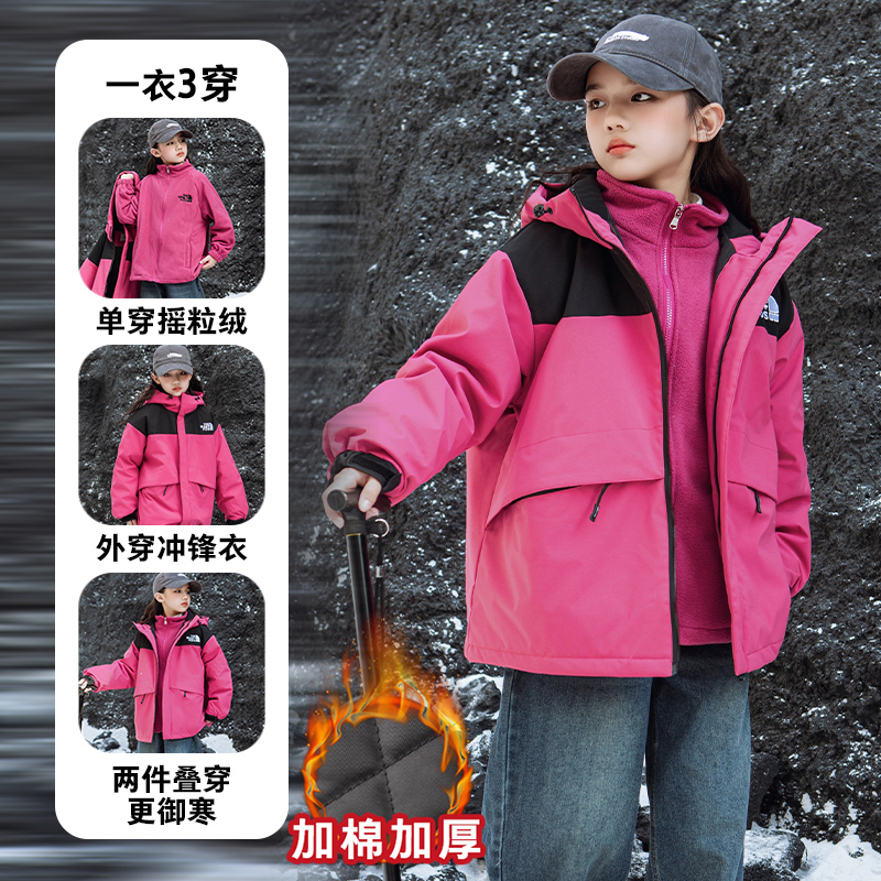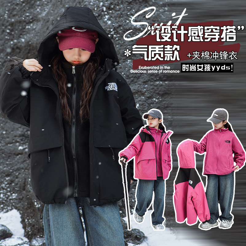 女童冲锋衣冬季新款儿童三合一棉外套中大童棉服休闲内胆加厚北面