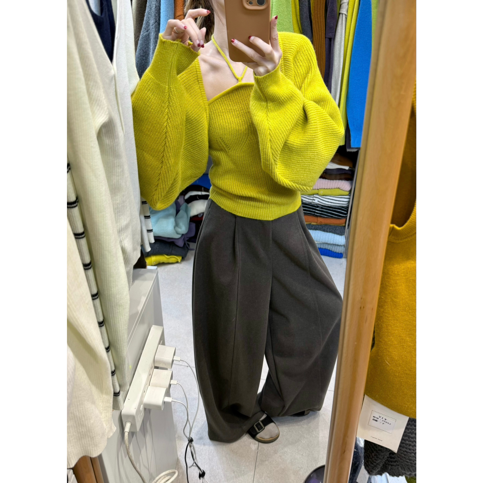 VI(唯一家)不要太韩了挂脖抹胸背心2025秋冬短款针织开衫两件套