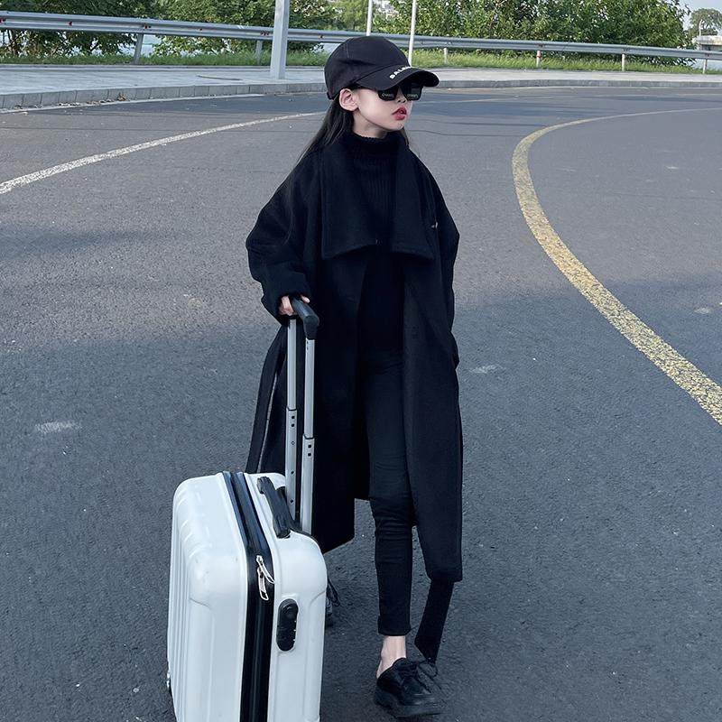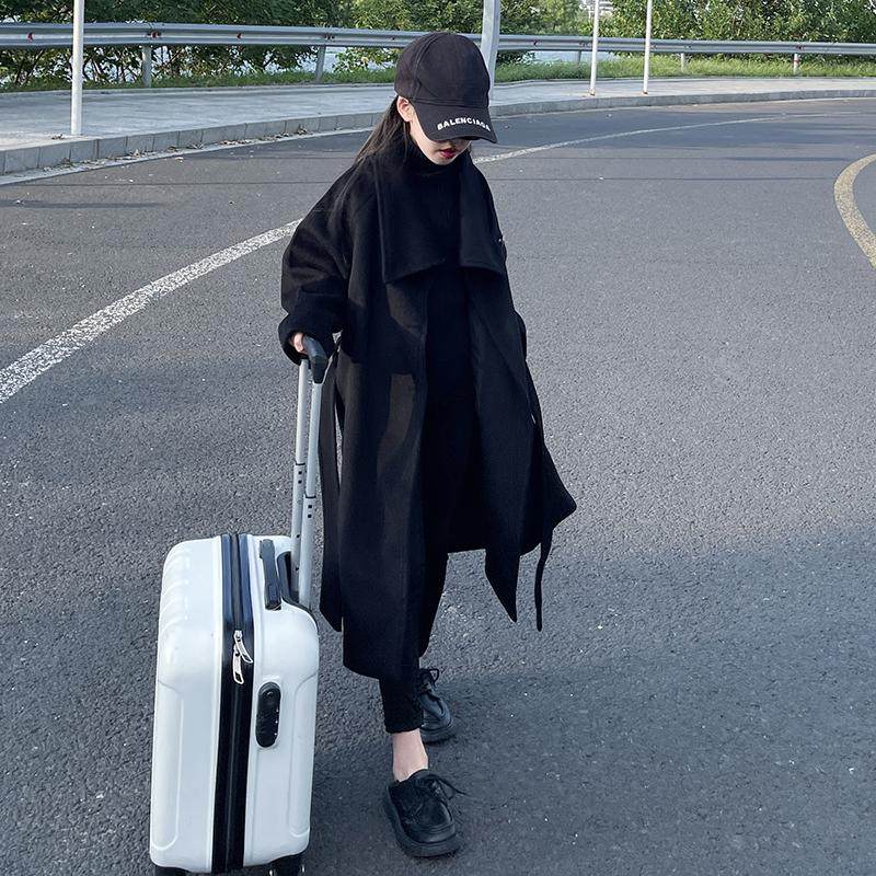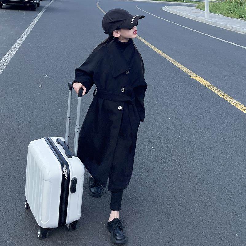 英伦风黑色风衣外套女童2025秋冬新款法式高级韩版中长款呢子大衣