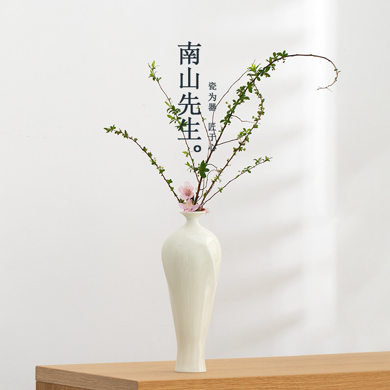 南山先生柔月花器陶瓷装饰摆件中式插花家用台面复古简约小号花瓶