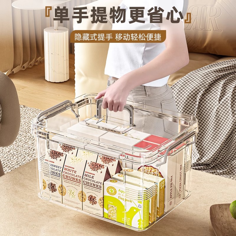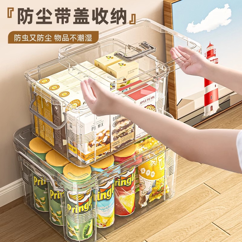 透明收纳箱家用塑料整理玩具零食杂物收纳盒手提大容量密封