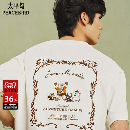 【艺术家系列】太平鸟男装后背刺绣T恤25夏新款圆领体恤衫重磅tS