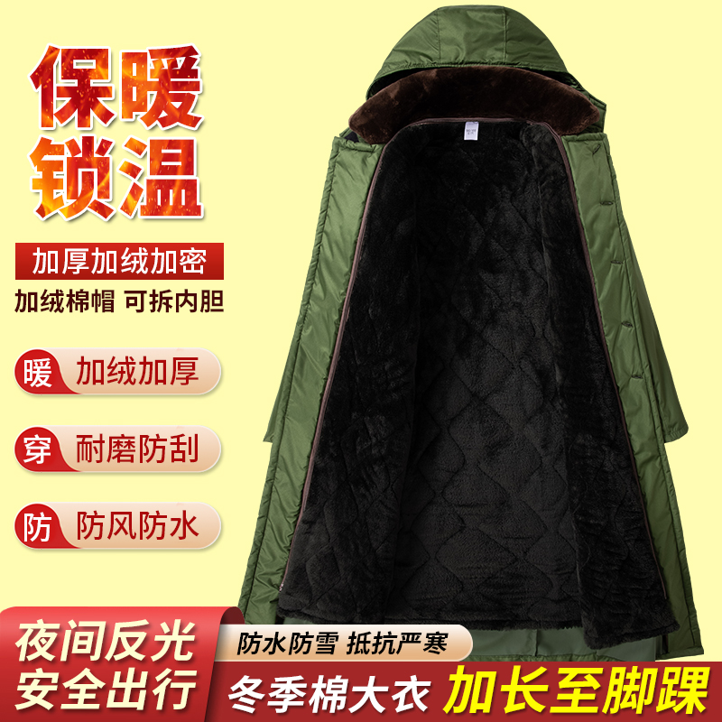 军棉大衣冬季加厚男女长款冷库劳保安防寒工作服老式东北绿大棉袄