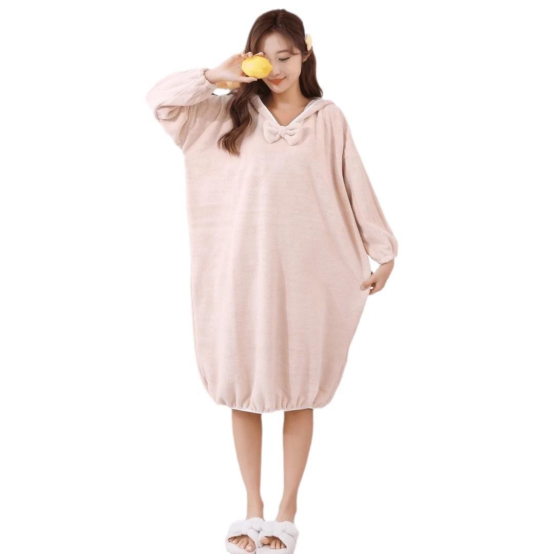 可穿速干浴袍珊瑚绒睡袍女冬季2024新款加绒加厚情侣睡衣浴裙洗澡