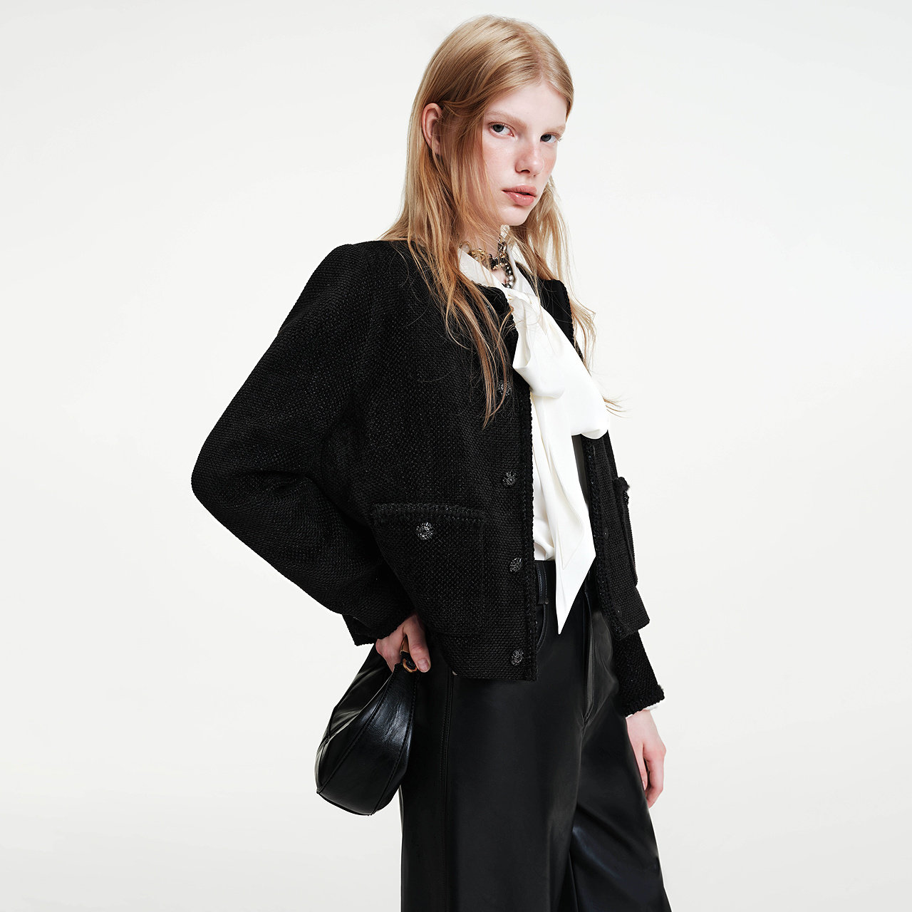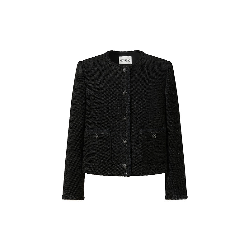 商场同款 摩萨克2025冬季新款简约纯色圆领小香风粗花呢短外套女