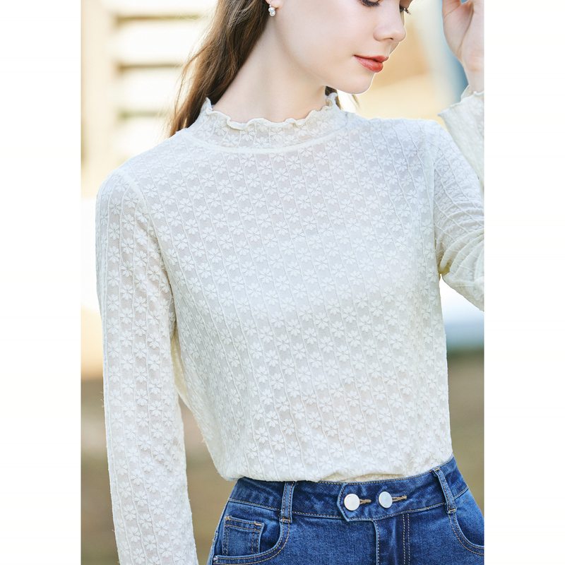 betu百图半高领蕾丝长袖T恤女内搭打底衫显瘦上衣年春季新款