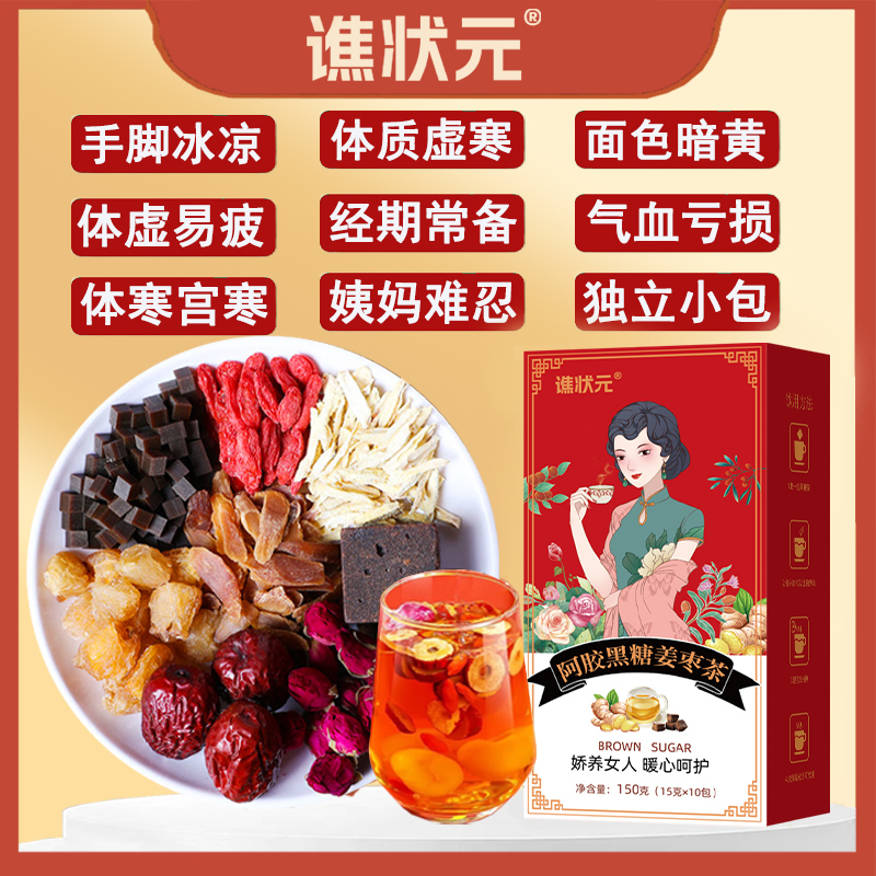 阿胶红参黑糖姜枣茶红糖姜茶红枣枸杞桂圆茶女人八宝茶自用养生茶
