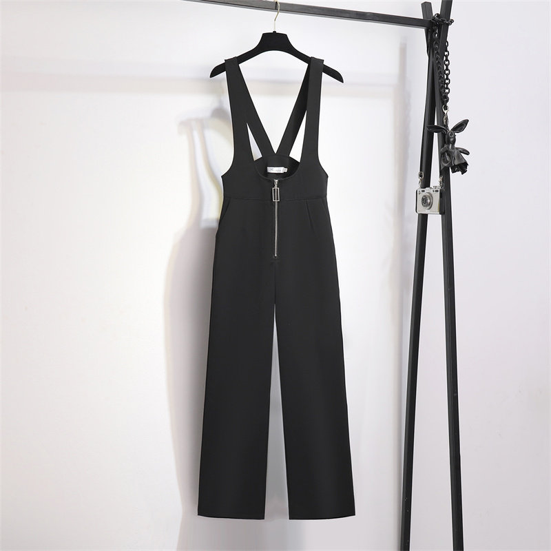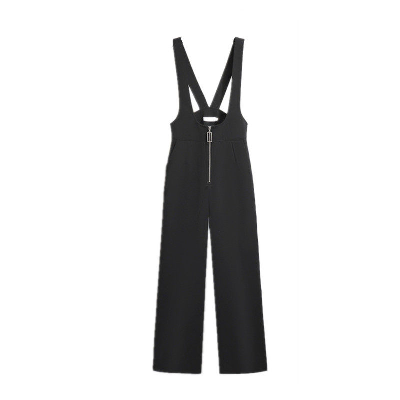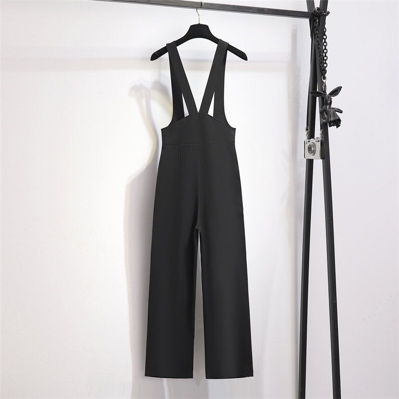 高级感背带裤女春秋2025新款显瘦高腰垂感阔腿西装裤黑色连体裤子
