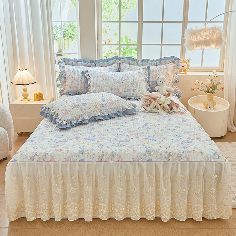 A类全棉双层纱纯棉夹棉床裙单件公主风高级感刺绣花边床罩保护套
