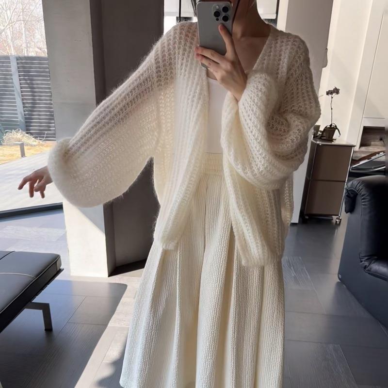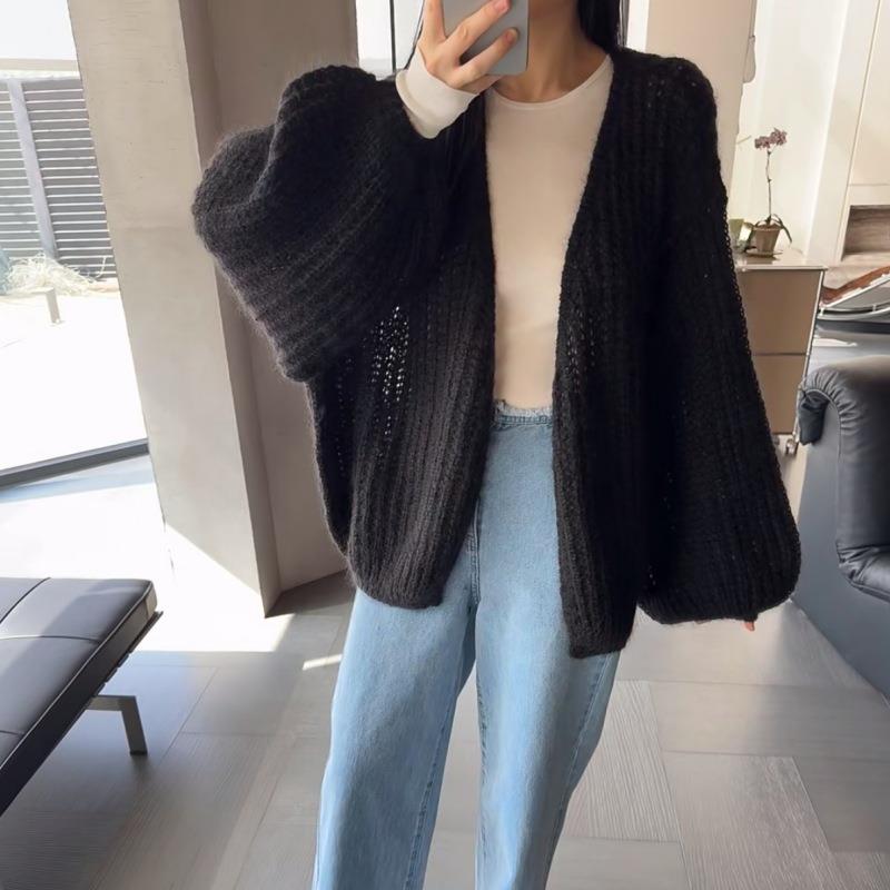 TOT慵懒风宽松马海毛开衫小众加厚针织披肩外套女2025秋冬厚毛衣
