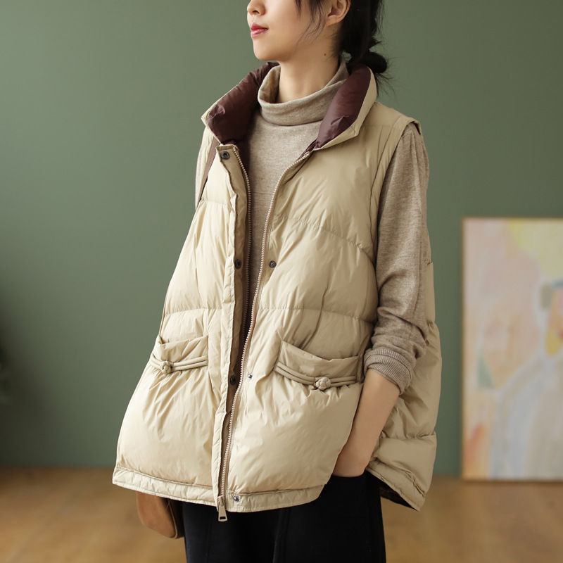 新中式平湖羽绒马甲女款端女士短款国风背心春秋砍肩无袖羽绒服