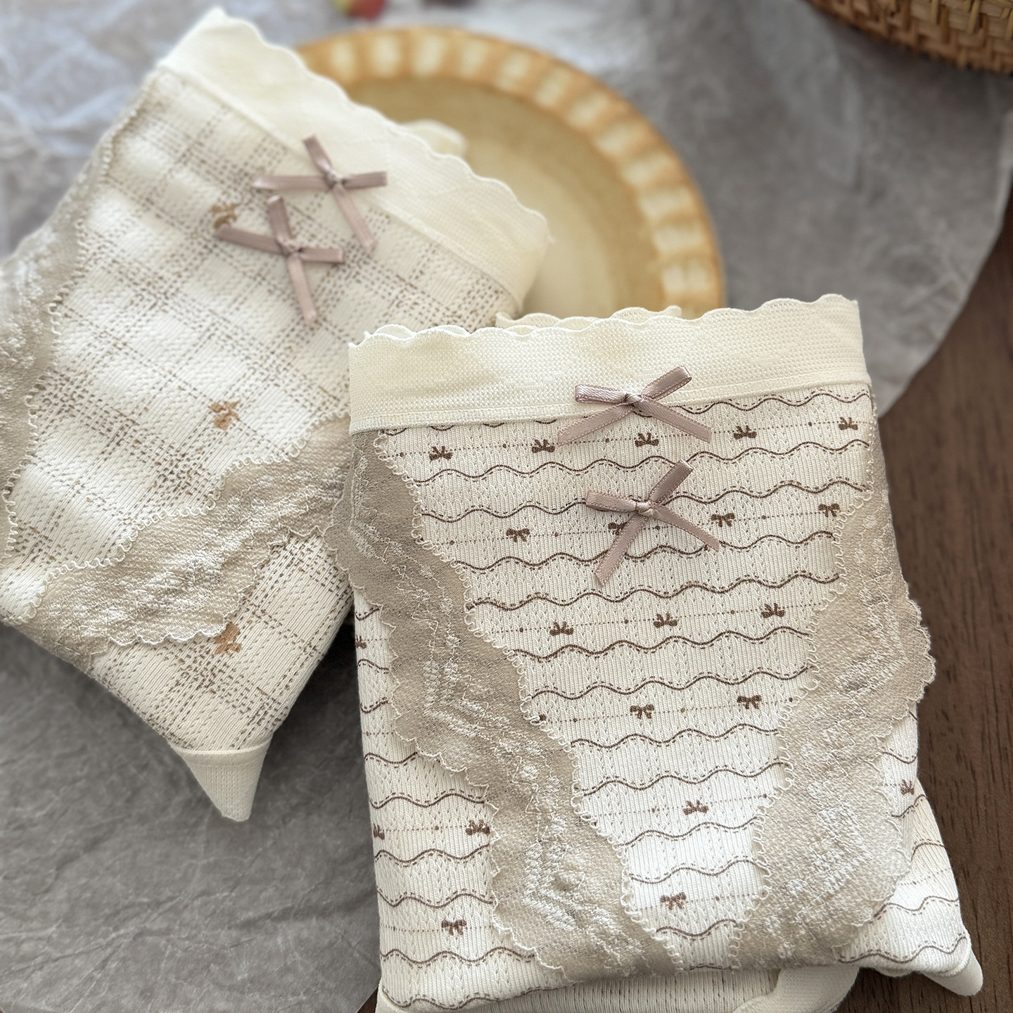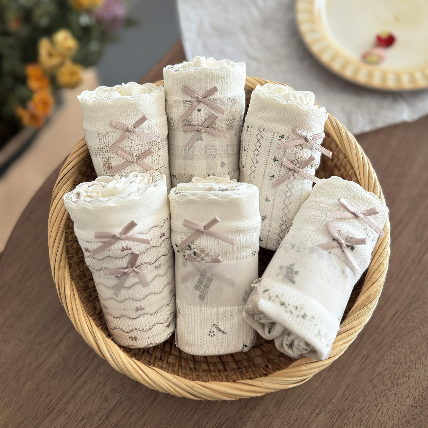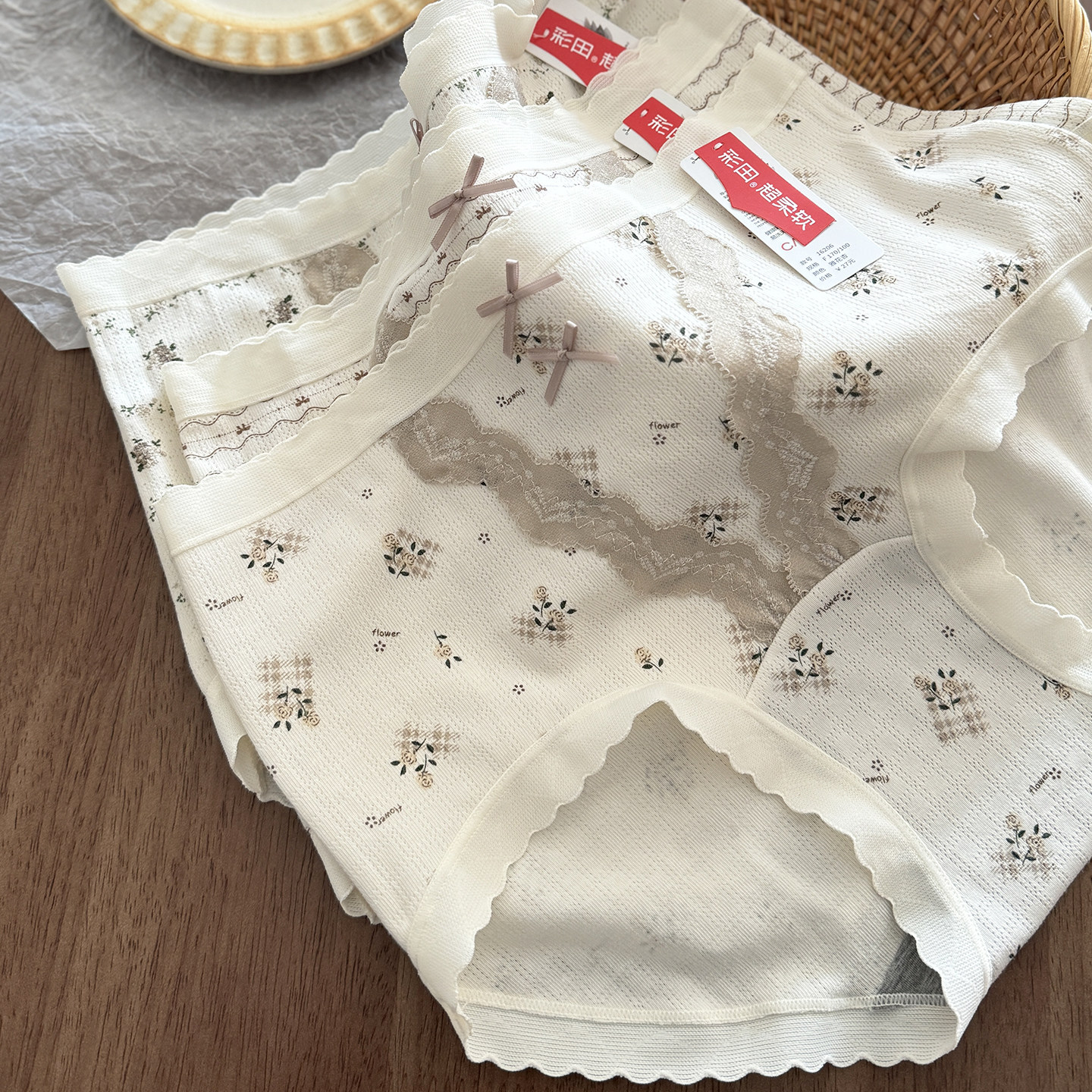 彩田女士内裤2026年新款绝美蕾丝高级感法式碎花云朵棉中高腰短裤