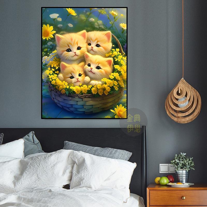 猫咪钻石画2024新款动物手工5d点贴钻十字绣客厅儿童卧室床头满钻