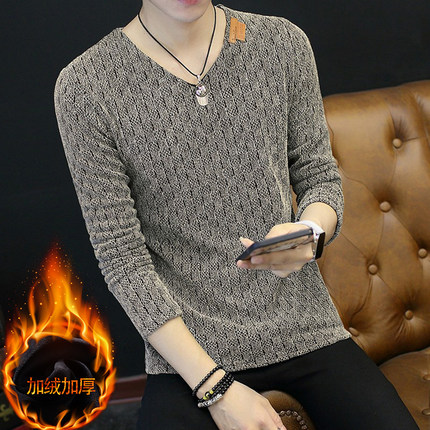 毛衣男保暖衣服2022新款秋冬大码V领打底衫加绒线衣冬季加厚上衣