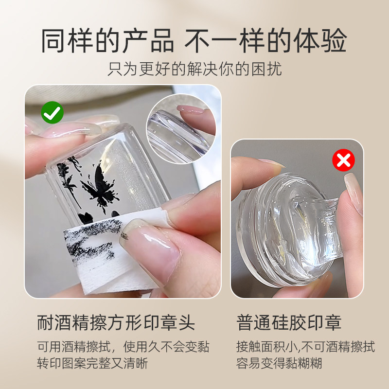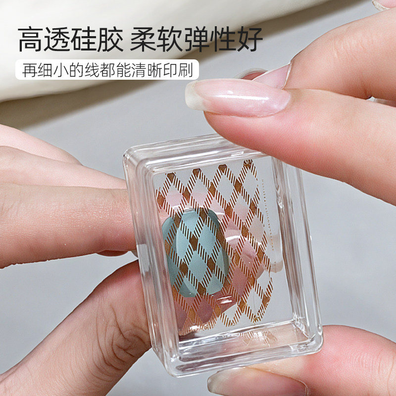 美甲高透硅胶方形印章2026新款可酒精擦拭多功能图案钢板转印工具