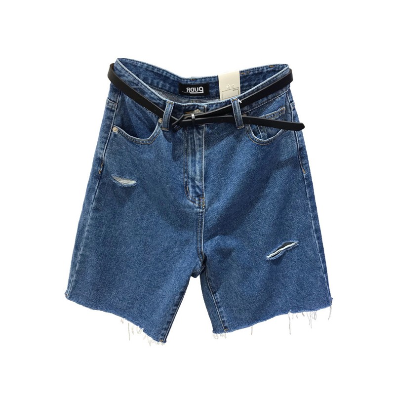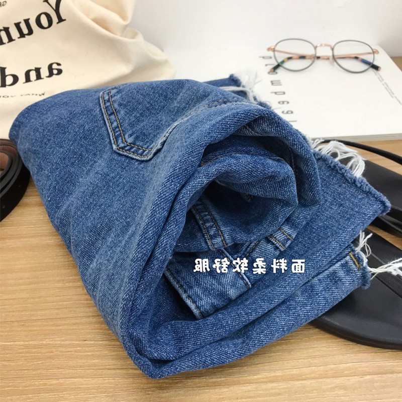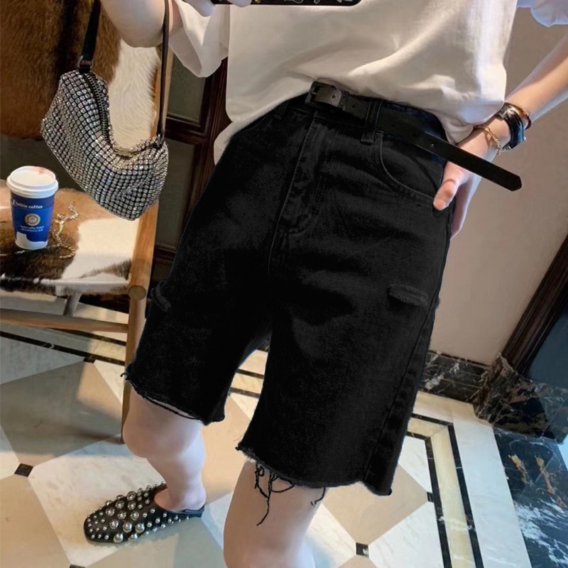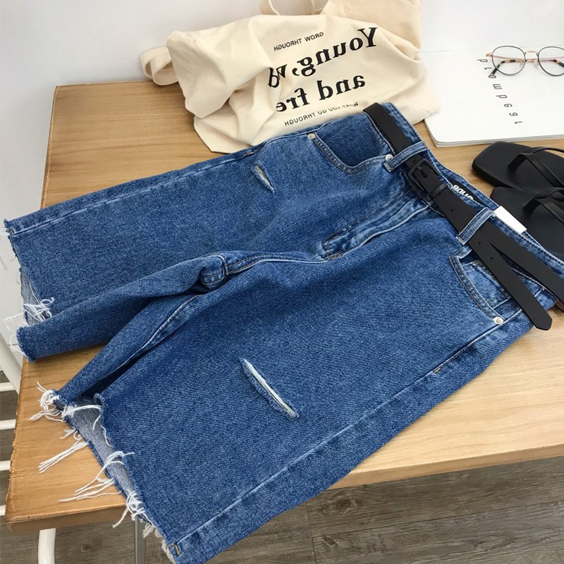 2025夏装新款大码破洞牛仔短裤女胖妹妹宽松阔腿裤显瘦中裤五分裤