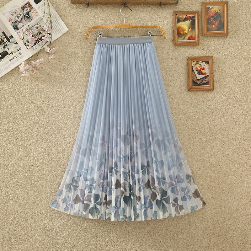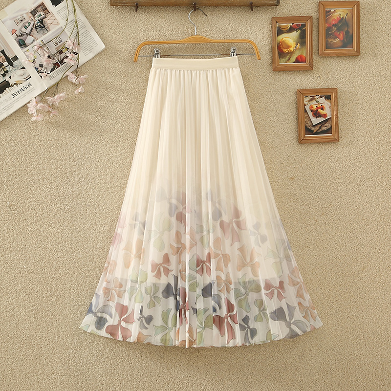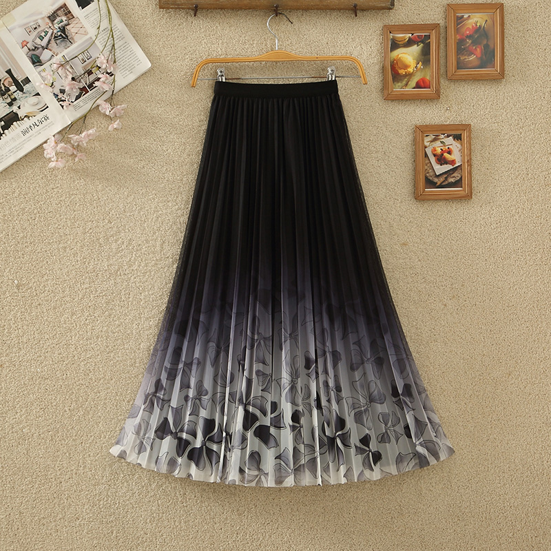 2024夏季新款高腰时尚气质甜美碎花网纱半身裙女百褶大摆纱裙长裙