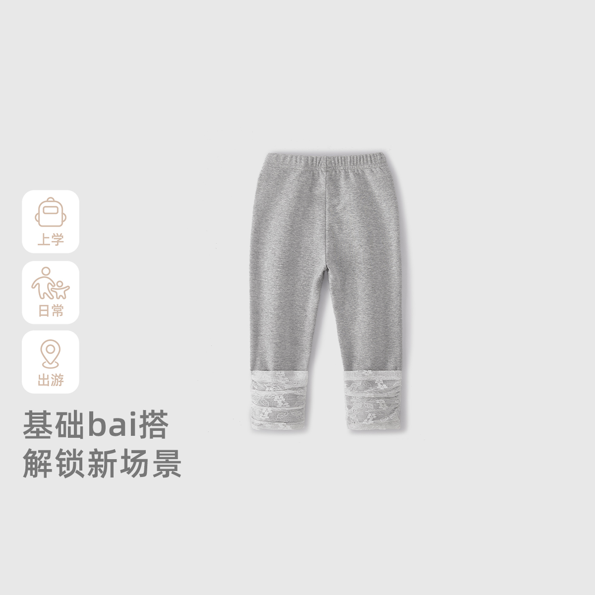 [7A抗菌]女童秋天打底裤儿童洋气秋装小童法式蕾丝花边宝宝裤子女