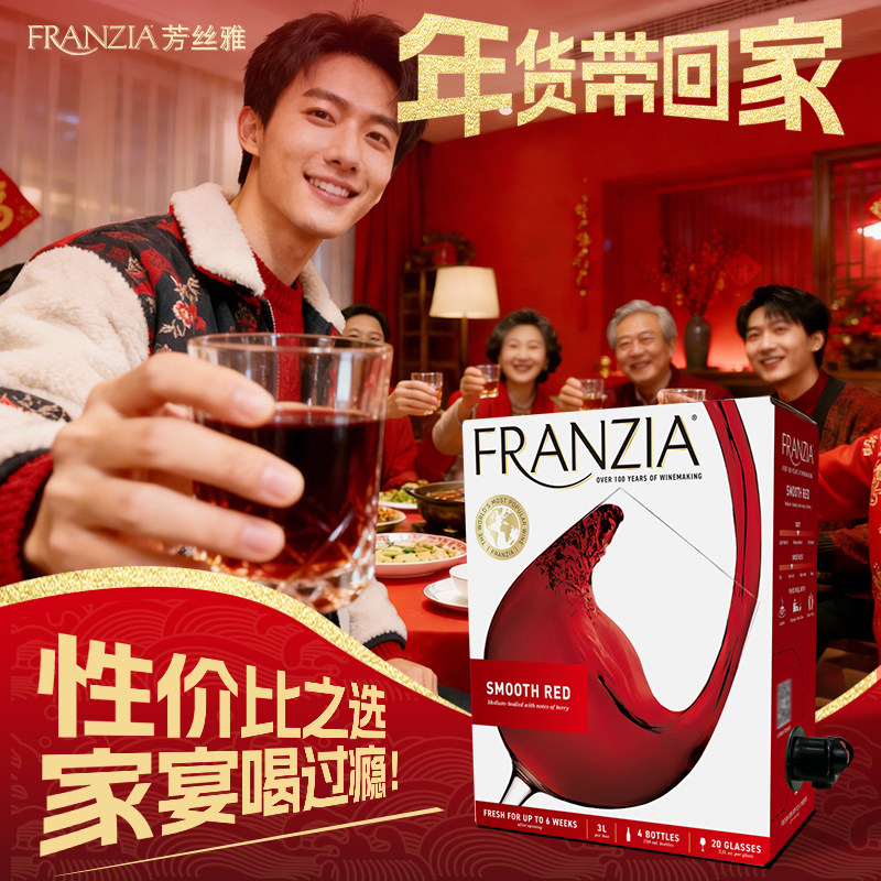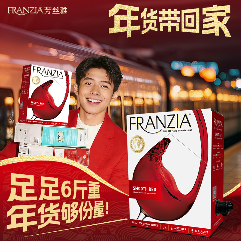 FRANZIA芳丝雅红3L盒装半干型红葡萄酒年货红酒聚餐送礼酒