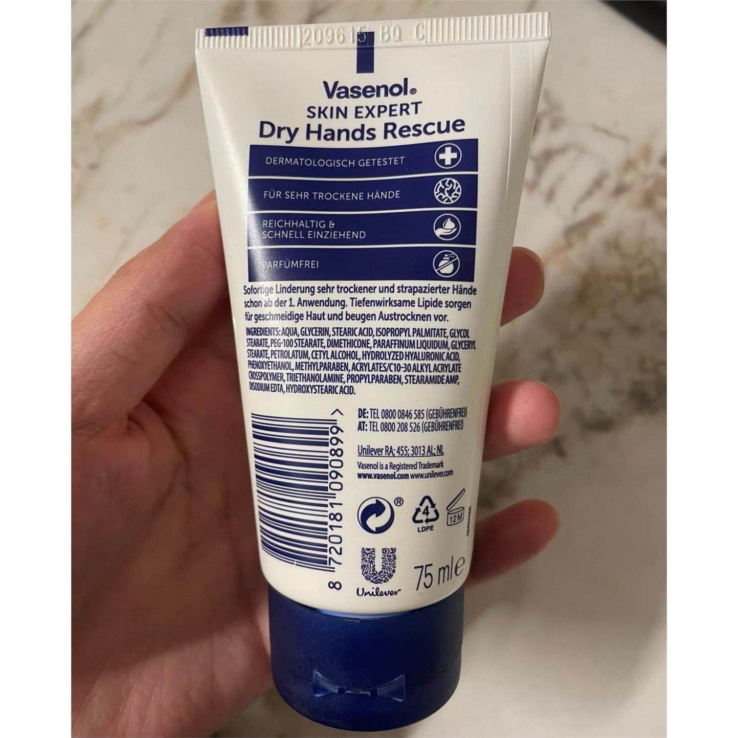 德国进口Vaseline凡士林特润护手霜深层保湿干性肌肤适用补水无香