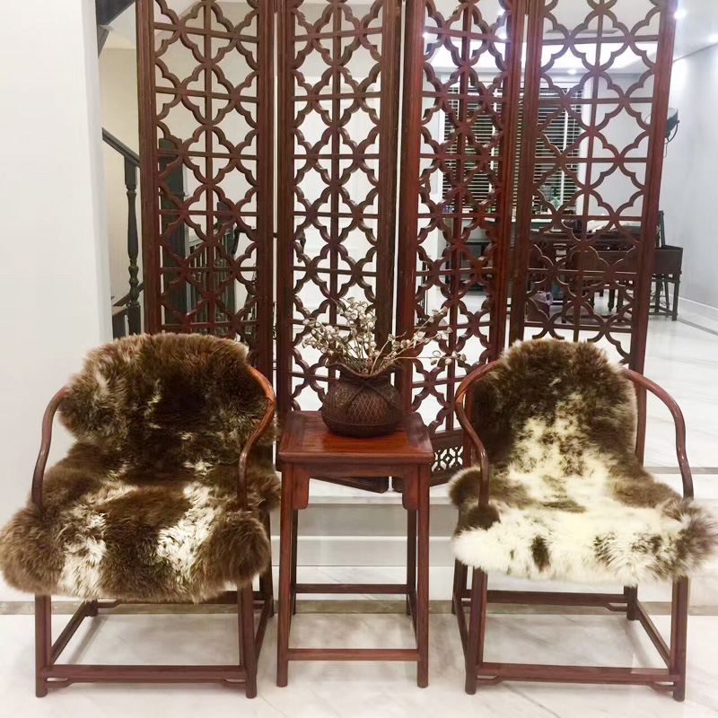 纯羊毛实木椅子沙发垫子毛坐垫皮毛一体木红木春秋椅子靠背皮草垫