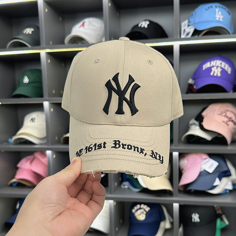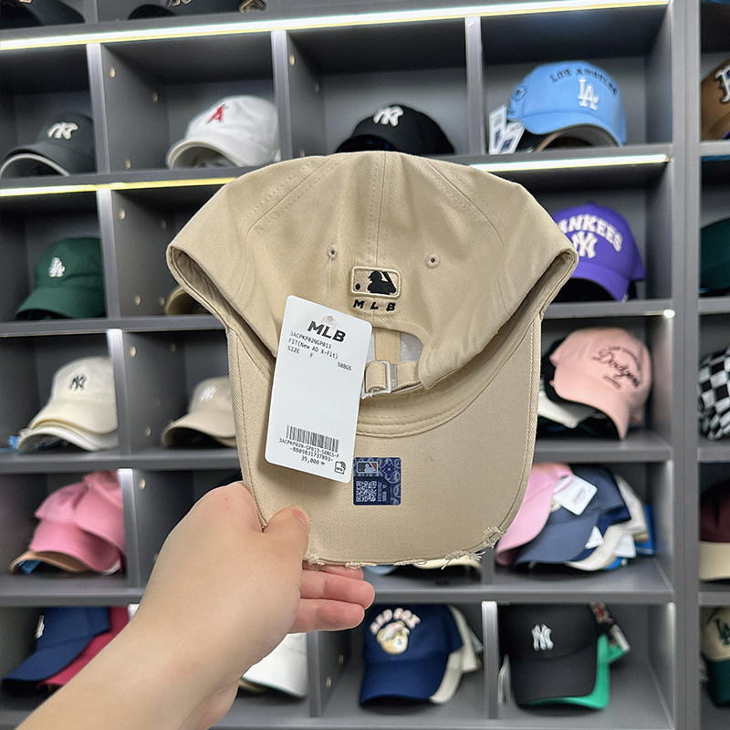 韩国MLB帽子鸭舌帽百搭刺绣做旧做旧破洞NY标棒球帽弯檐遮阳帽